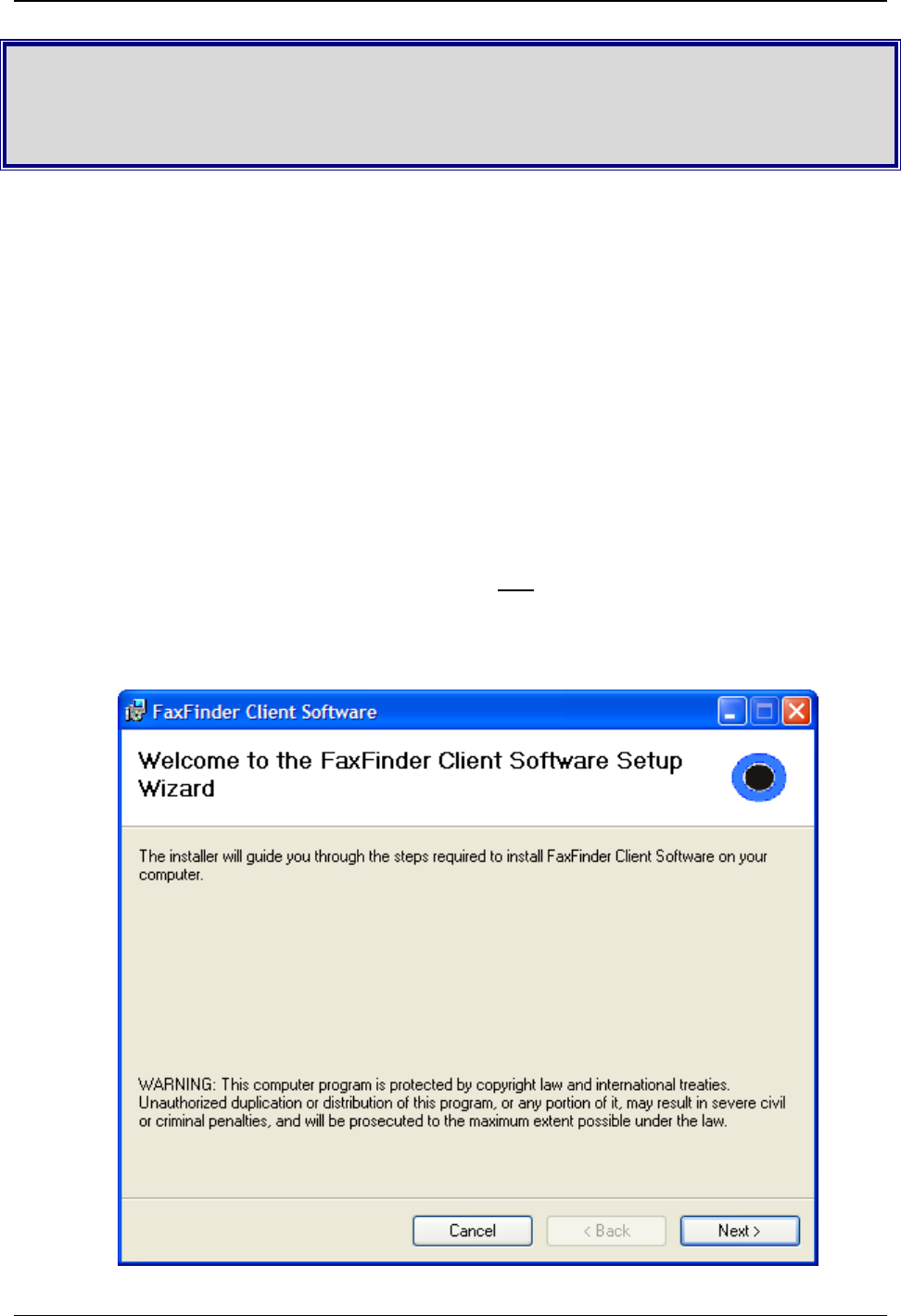Important: If you have any old versions of the FaxFinder client software installed (for any FaxFinder